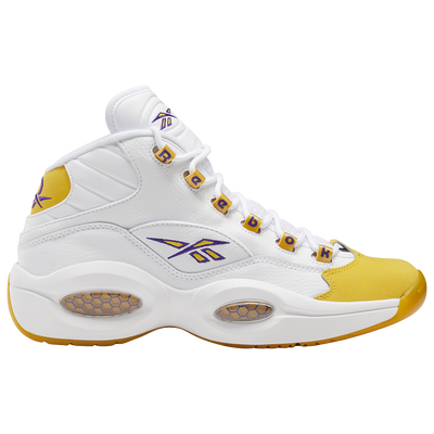Supplier-sku #: FX4278The answer to your quest! The Reebok Question Mid “Yellow Toe” elevates your courtside style. Designed originally for Allen Iverson and debuted on the court by Laker’s point guard Quinn Cook in the 2020 playoffs, these kicks bring a classic look while you hoop. Paying homage to the team’s special all-white alternate, these undeniably comfortable sneakers crafted with soft tumbled leather and color contrast on the toe keep you poppin’ through the streets and the court. The signature hexagonal cushioning that provides all-day comfort and webbed gillies with TPU reinforcement make them a staple addition to your closet.