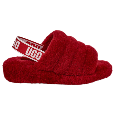 Slide into cozy comfort and say Fluff Yeah! Made with a sheepskin lining and insole for both comfort and durability, these slides also feature an elastic strap with that familiar UGG graphic